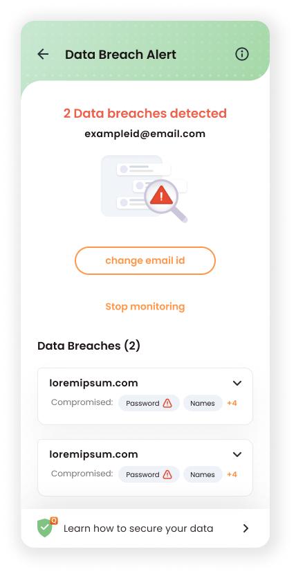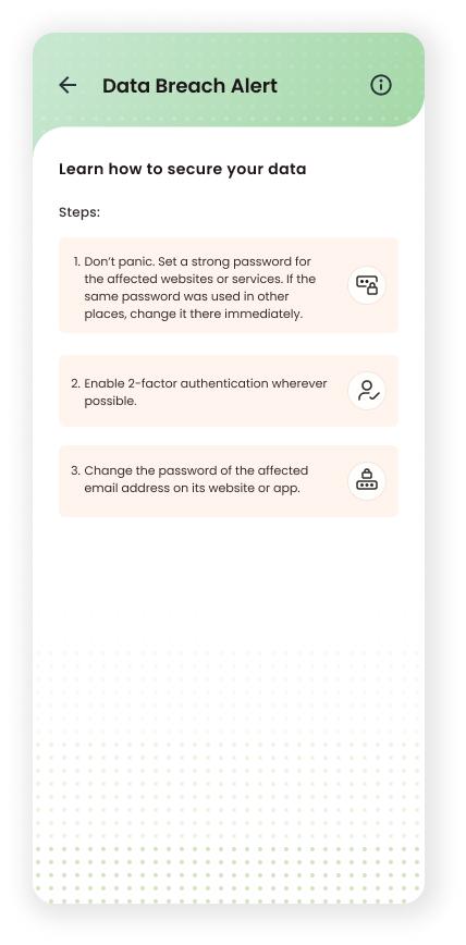 Designed a user-centric Data Breach Alert flow, transforming complex breach data into clear, actionable steps that improved user awareness and security response